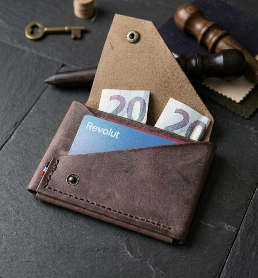 Alliez élégance, durabilité et savoir-faire avec ce portefeuille minimaliste en cuir italien. Entièrement fabriqué à la main en France, chaque pièce est unique et conçue pour durer.